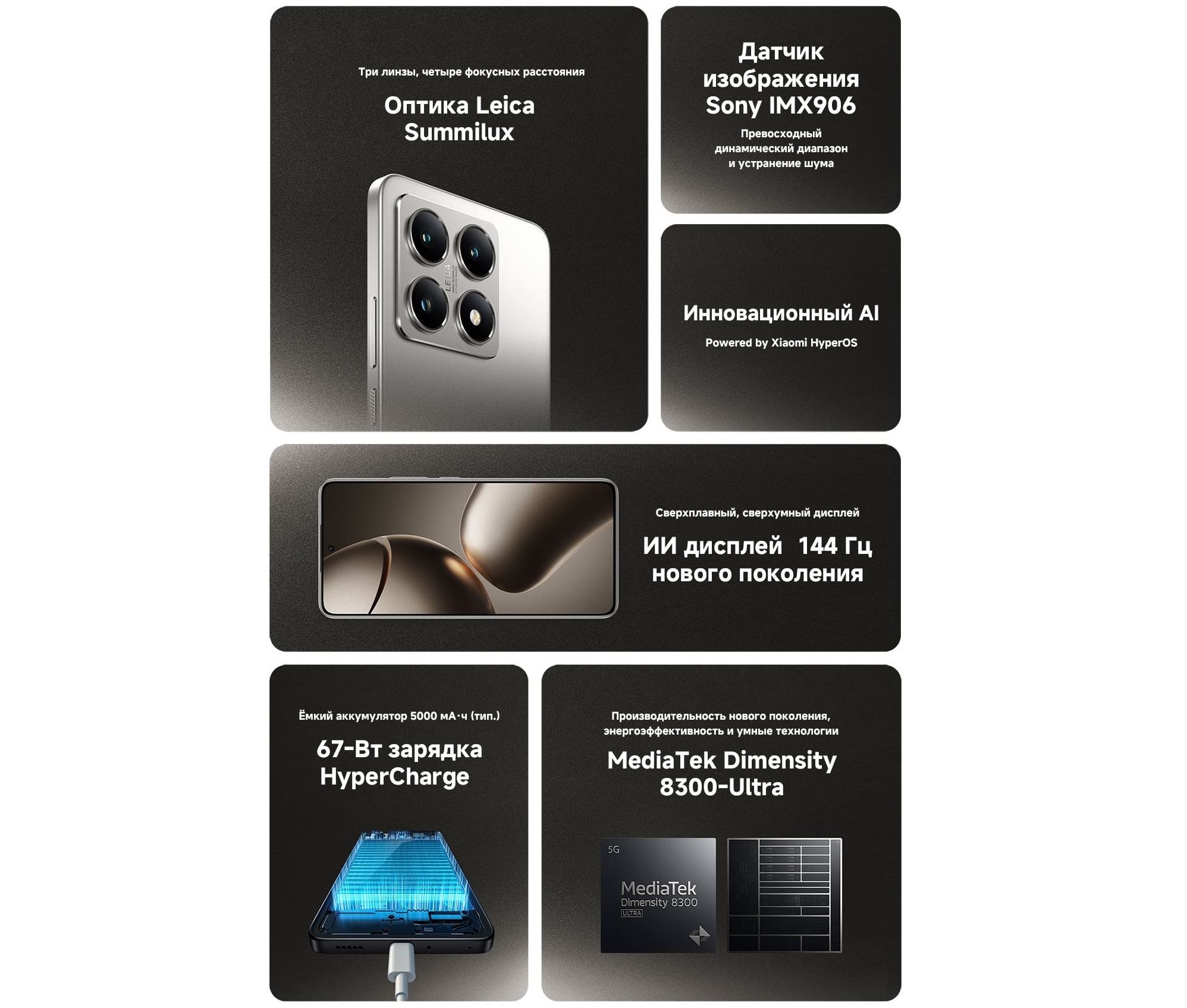 Особенности, дополнительноподдержка быстрой 67-Вт зарядки, степень пылевлагозащиты IP68, оптическая линза Leica Summilux, система Xiaomi AISP, поддержка искусственного интеллекта